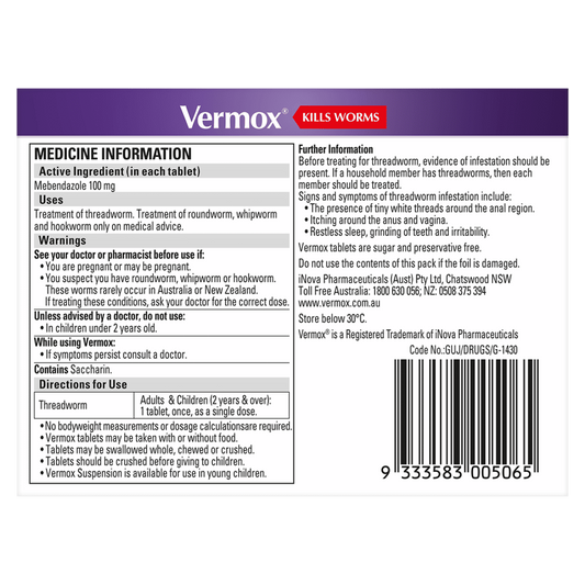 Vermox Orange Tablets - 6 tablets