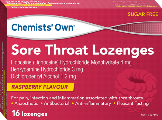 CO Sore Throat Lozenges Raspberry 16