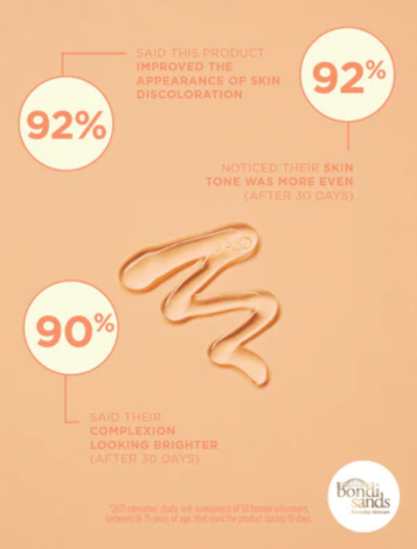 Every hour is Gold'n Hour with our brightening Vitamin C serum. Bondi Sands Gold'n Hour Vitamin C Serum works to brighten, soothe and nourish the skin to leave you with a radiant complexion. Enriched with 10% Vitamin C, Kakadu Plum and Licorice Root Extract, Bondi Sands Gold'n Hour brightens uneven, dull skin for a luminous complexion.
