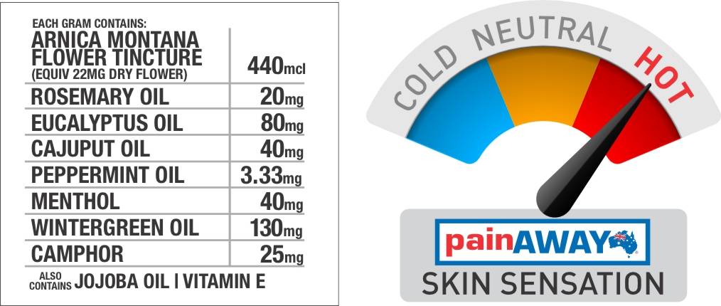 PLEASE CONTACT PAIN AWAY AUSTRALIA FOR FURTHER INFORMATION ON ACTIVE INGREDIENTS AND CONCENTRATION LEVELS.