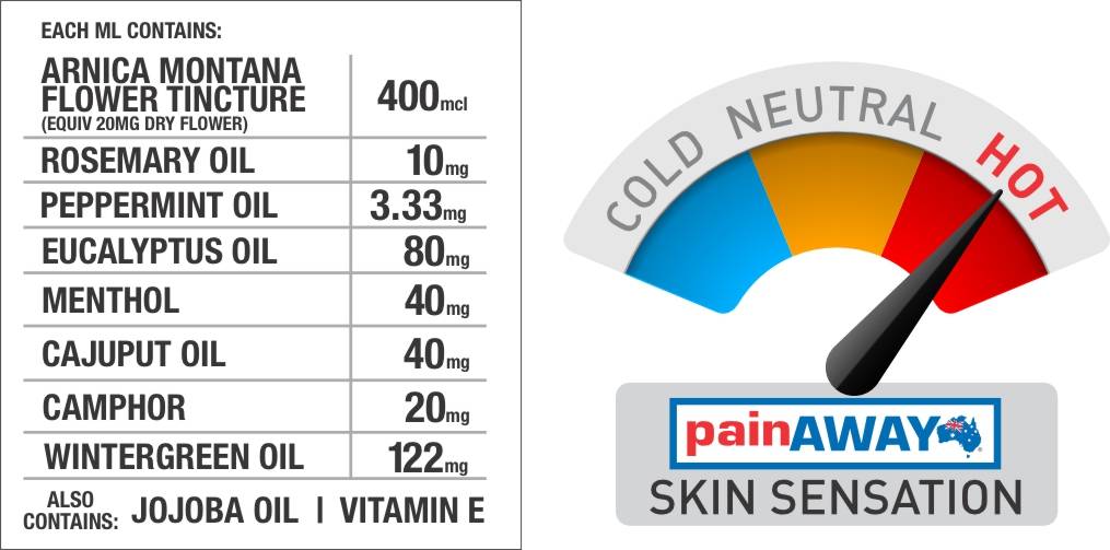 PLEASE CONTACT PAIN AWAY AUSTRALIA FOR FURTHER INFORMATION ON ACTIVE INGREDIENTS AND CONCENTRATION LEVELS.
